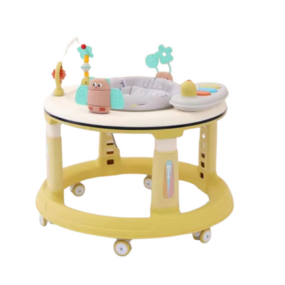 Centro de actividades: Mesa con juguetes interactivos (búhos, flores, piano, etc.) y asiento giratorio de 360° para mayor diversión.