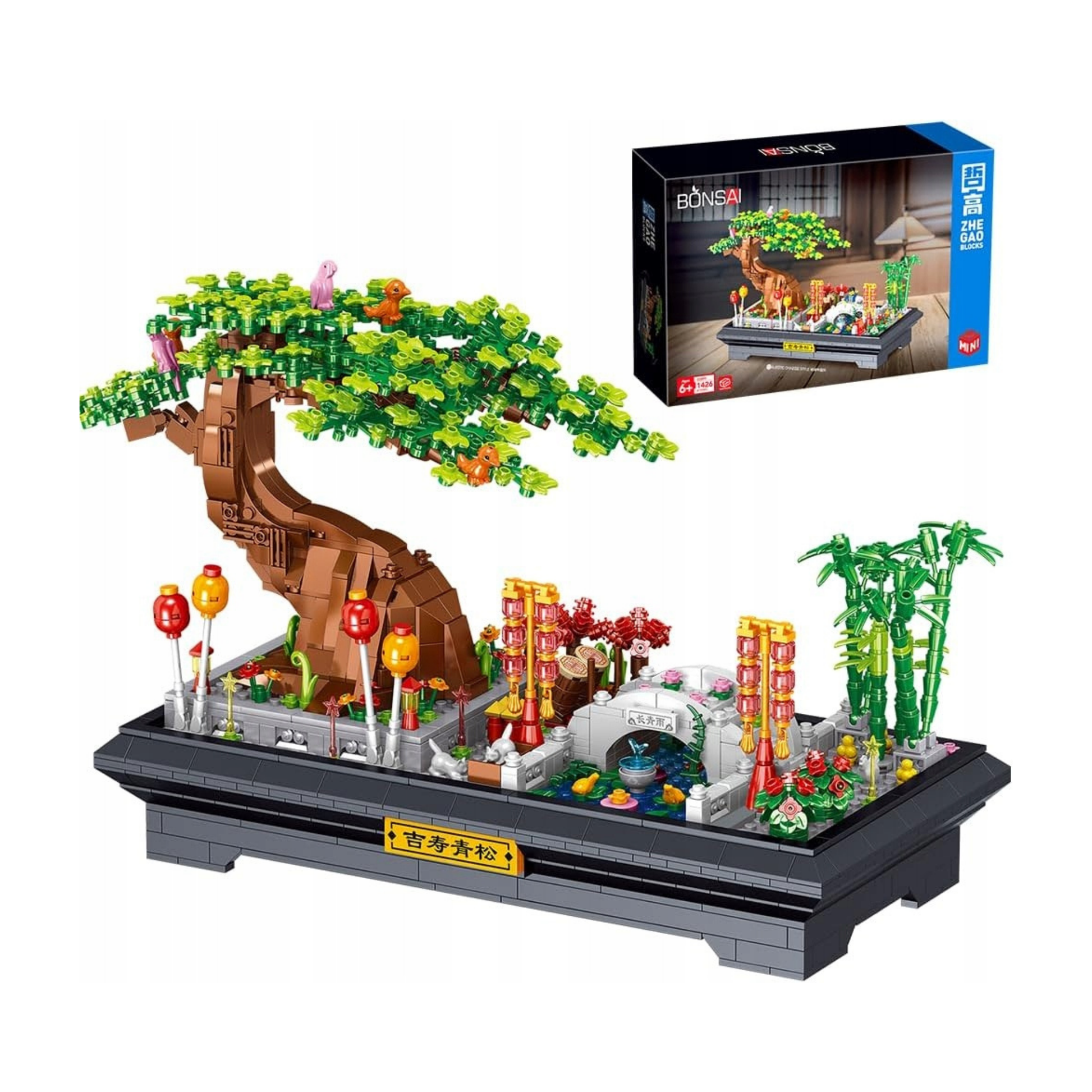 - Después de montar este kit de bloques de construcción de patio de flores de pino, será una decoración perfecta en tu hogar u oficina. El kit de árbol bonsái que está acabado se puede colocar en tu escritorio o en cualquier lugar.