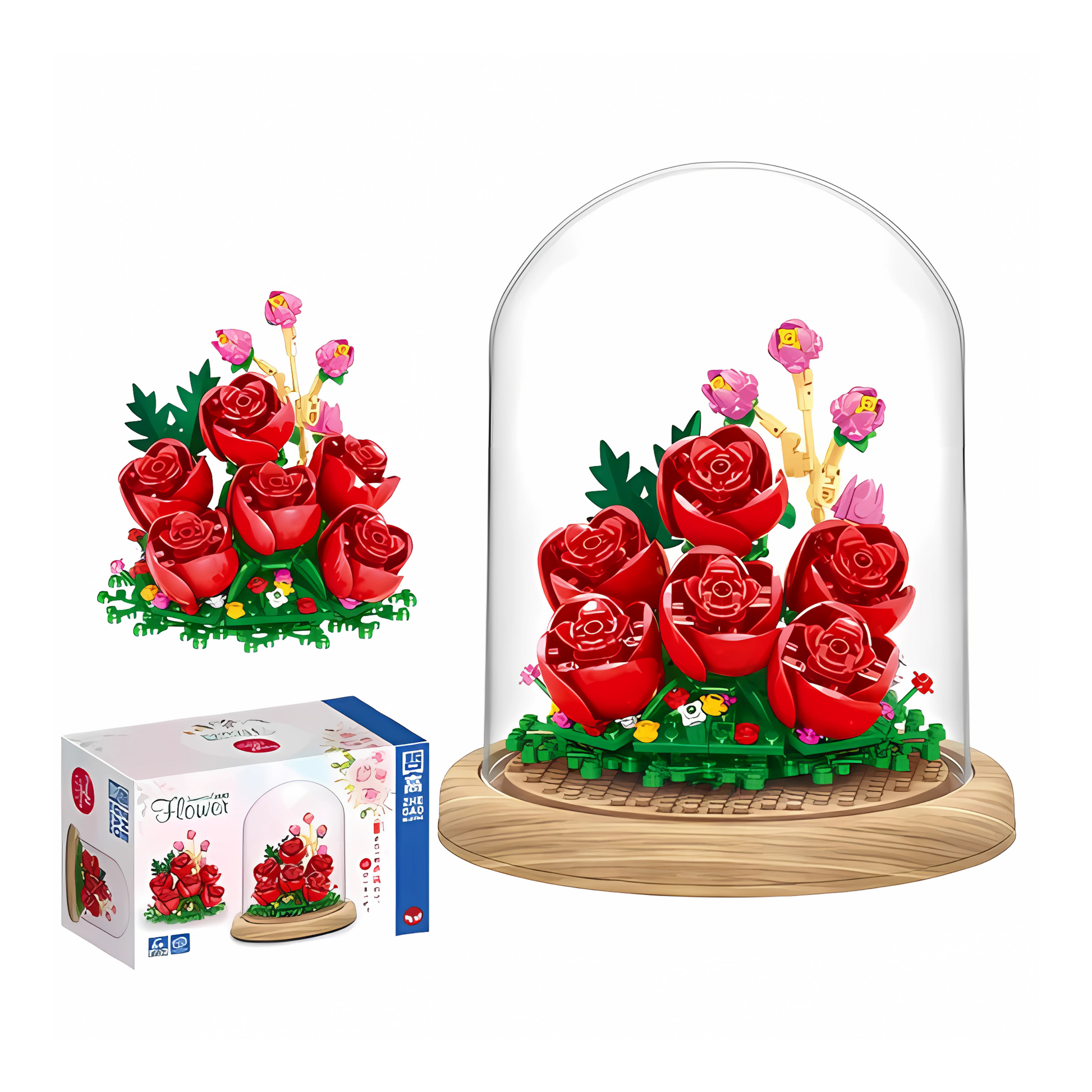 - Crea una decoración impactante con la serie de bloques de construcción Zhe Gao "Flor Eterna", que incluye un minibloque de rosa roja.