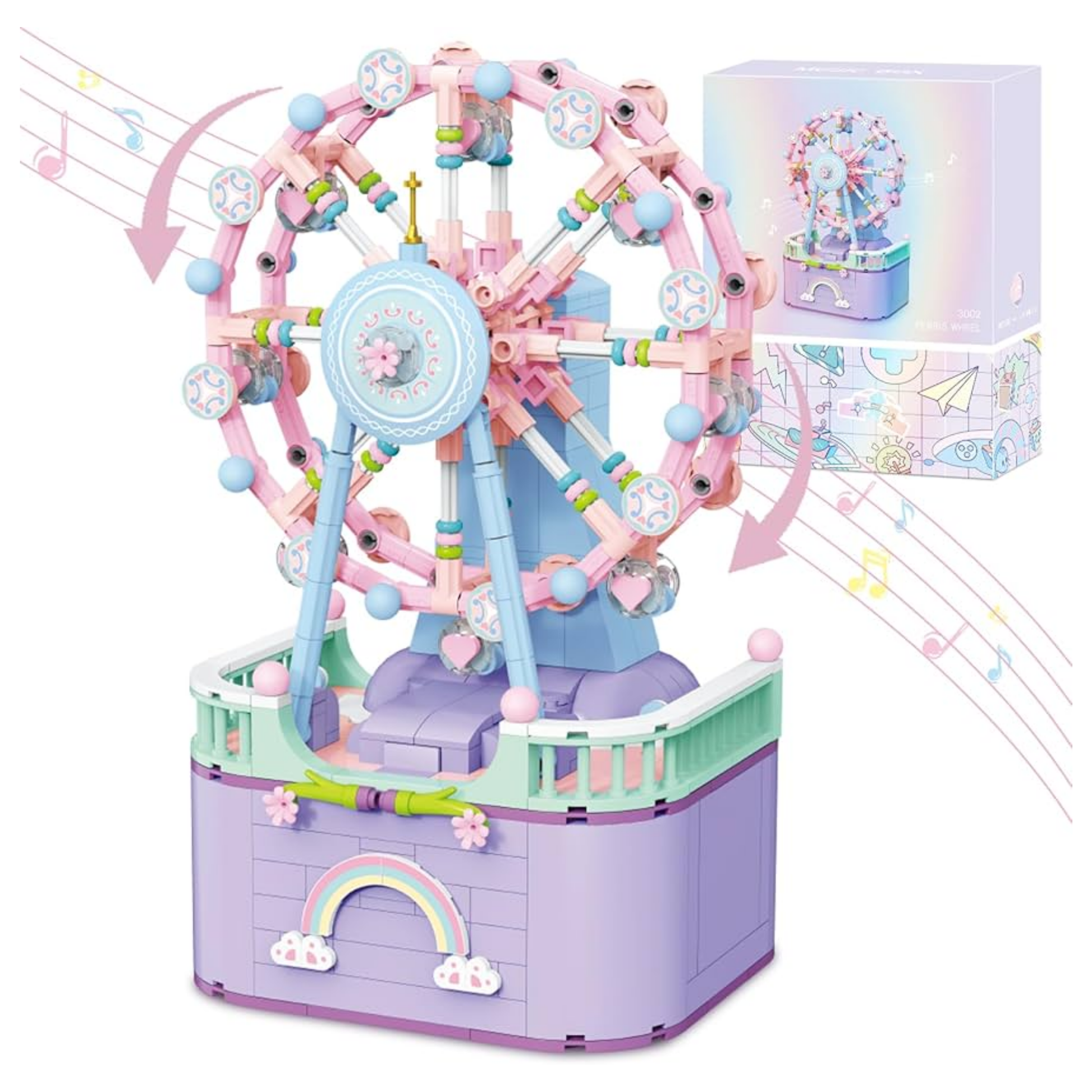 - Caja de música giratoria: hay un juego de construcción giratorio en la parte inferior del juguete de bloque de construcción de rueda de la fortuna.