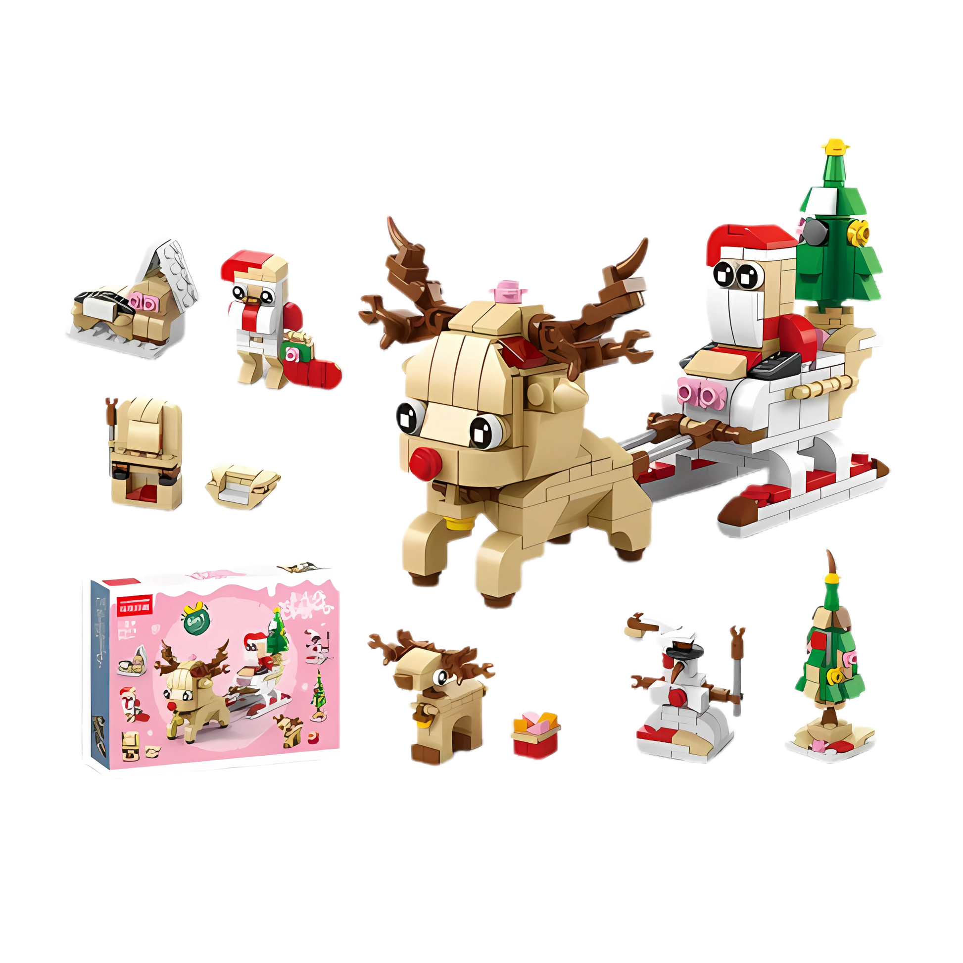 Crea una escena mágica de Navidad con bloques de construcción 6 en 1, ideal para reuniones familiares. Puedes montar un trineo con reno y Santa Claus.