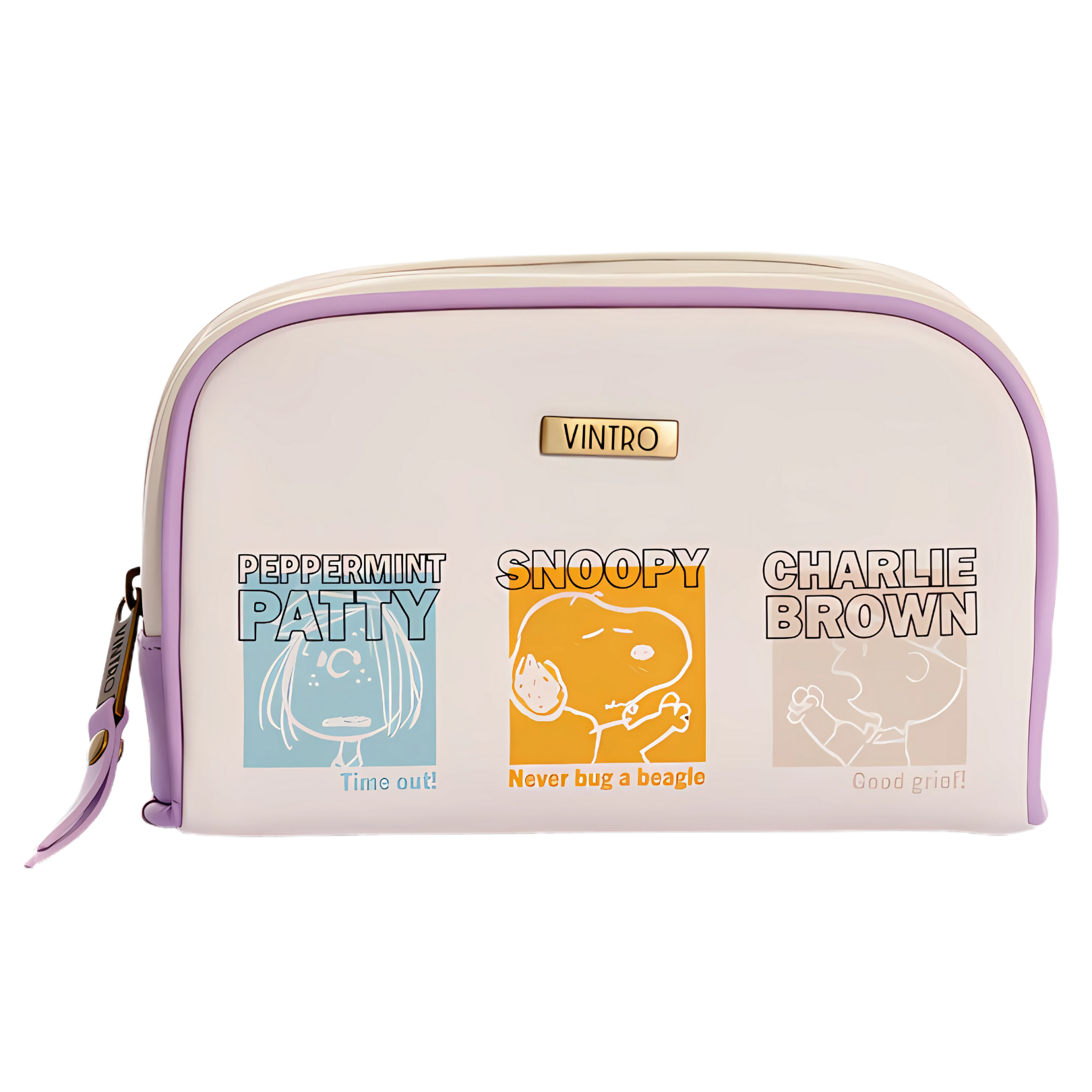 Cosmetiquera estampada elaborada en cuero vegano e interior en tela antifluido. Llévala en tu bolso o morral y guarda tu maquillaje.