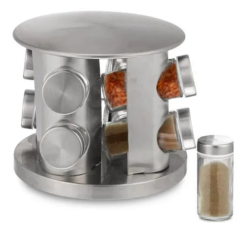 Este condimentero en carrusel es una solución práctica y elegante para mantener tus especias organizadas y al alcance. Su diseño giratorio permite un fácil acceso a todos los condimentos, optimizando el espacio en tu cocina o comedor. Fabricado con materiales duraderos, garantiza estabilidad y resistencia, facilitando la rotación suave y segura. Ideal para chefs profesionales y aficionados que buscan eficiencia y orden en la preparación de sus platos.