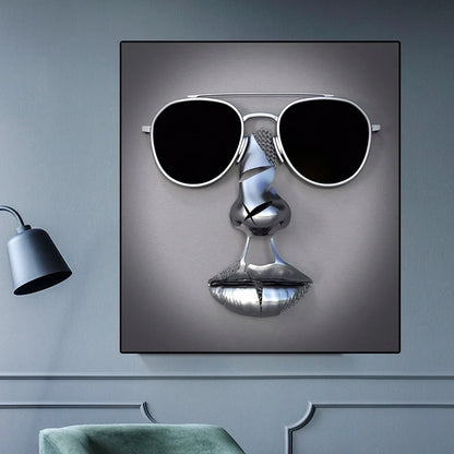 Cuadro Decorativo – Rostro Abstracto con Gafas Plateadas