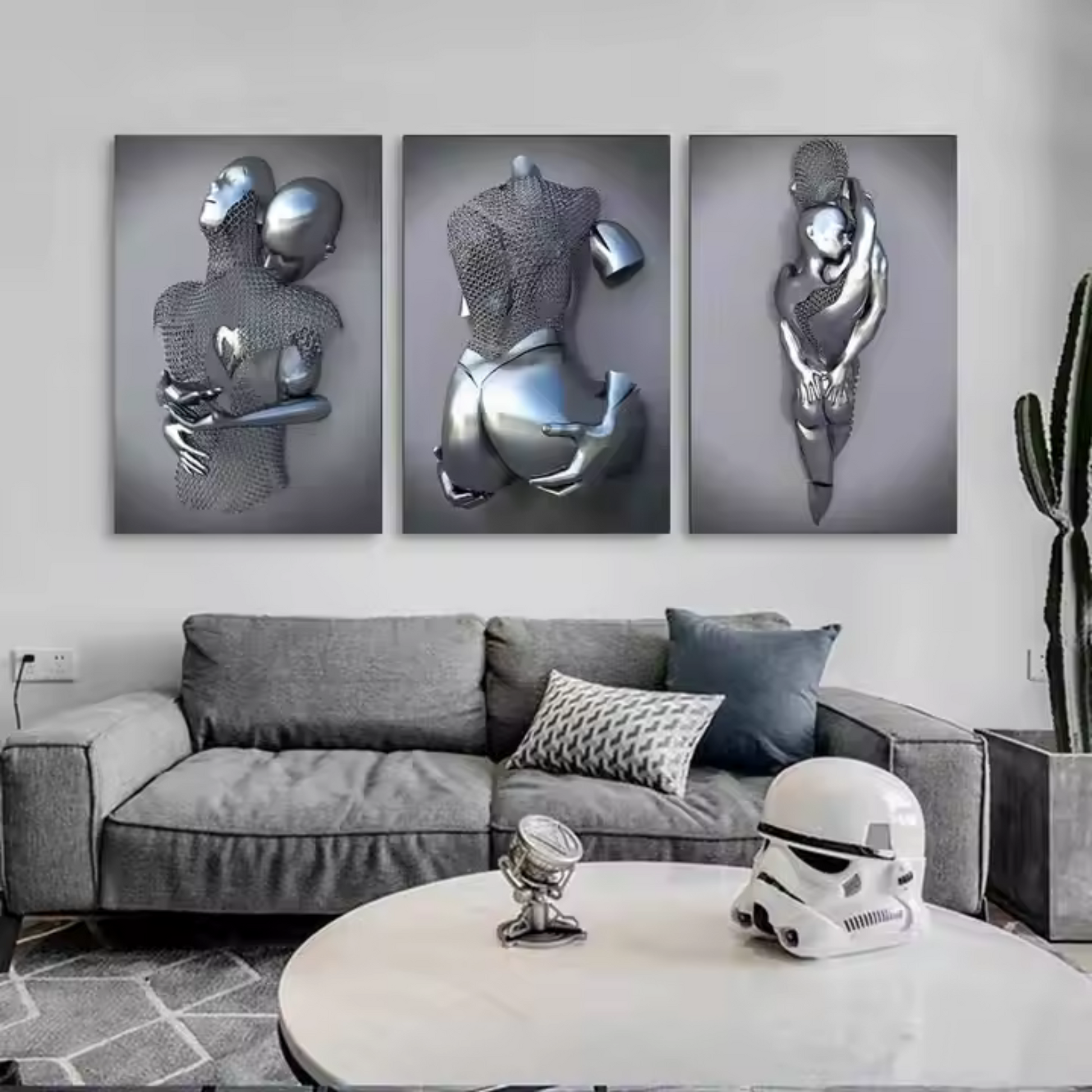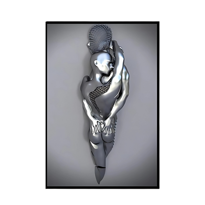 Cuadro Decorativo – Pareja en Abrazo con Detalles Plateados
