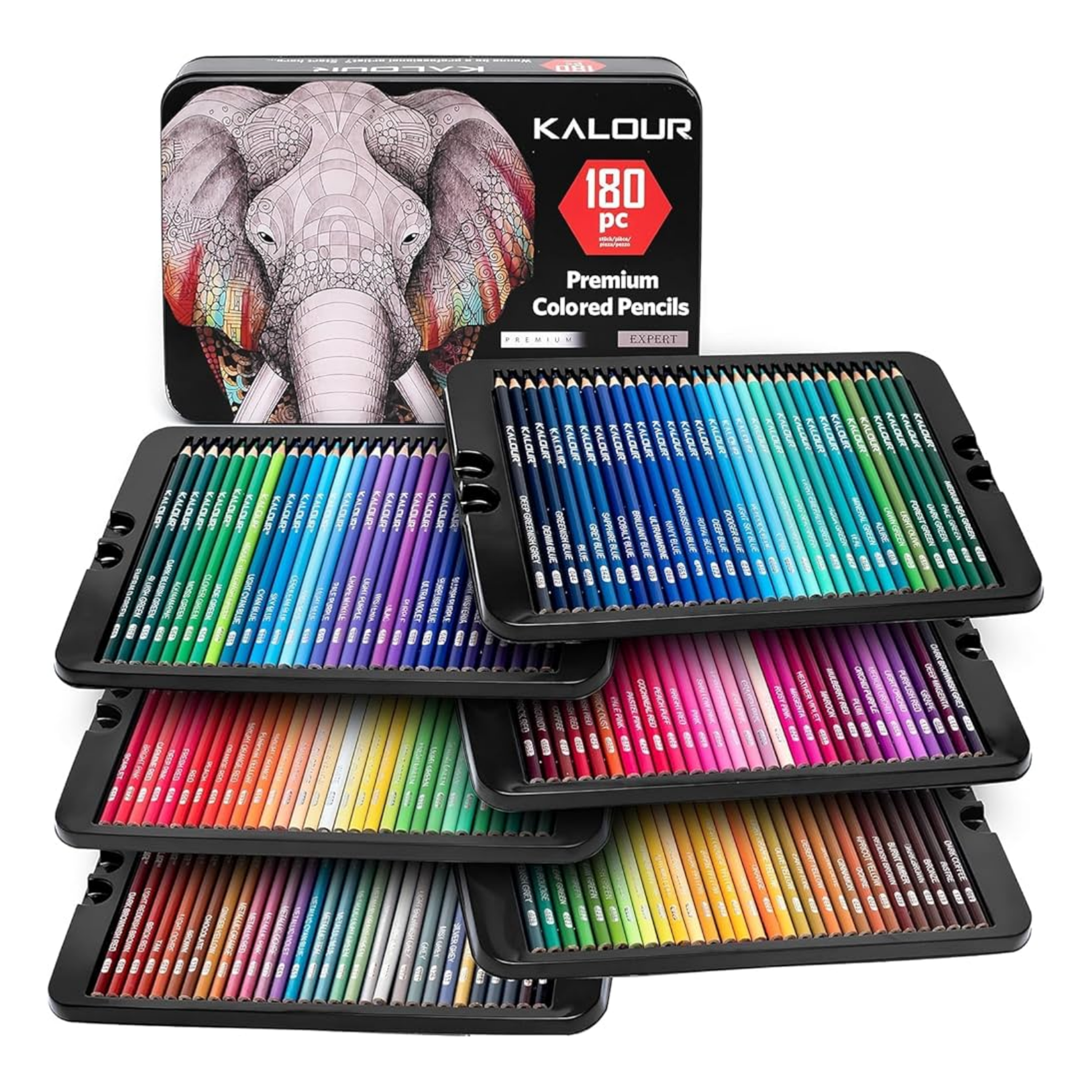 Lápices de colores profesionales KALOUR, juego de 180 colores vibrantes, ideales para dibujar, dibujar y sombrear. Lápices de colores para adultos, artistas y principiantes