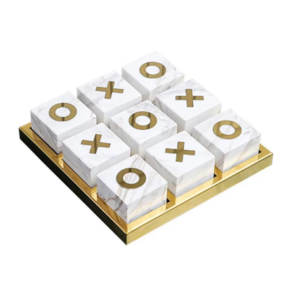 Juego tic tac toe con piezas de mármol y tablero dorado