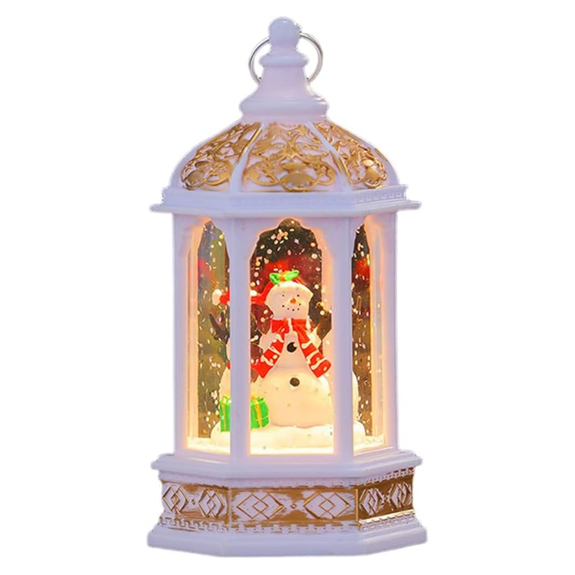 Lampara de navidad en resina de color blanco con muñeco de nieve.