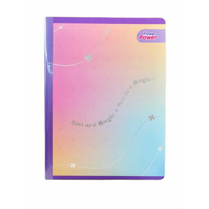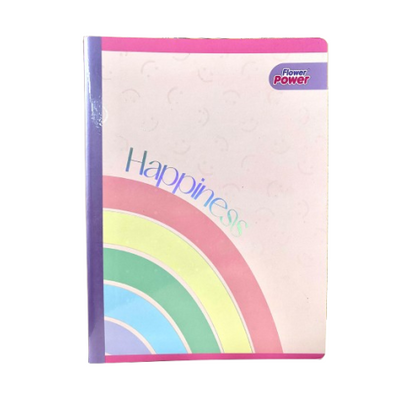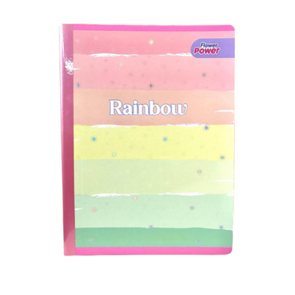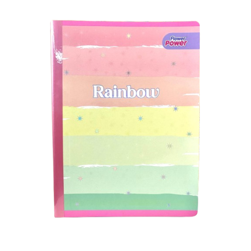 Cuaderno Cosido Flower PowerRainbow, de la Primavera. Con un tamaño de 18 x 24 cms. aprox., este cuaderno es perfecto para que dejes volar tu imaginación y creatividad en cada página. Con 100 y 50 hojas cuadriculadas, rayadas y ferrocarril, tendrás espacio más que suficiente para plasmar tus pensamientos y dibujos más coloridos.