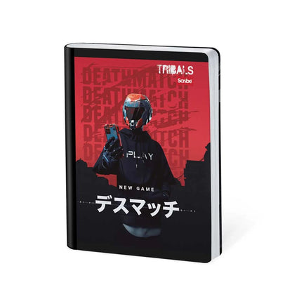 cuaderno tribals cosido rayas 100 hojas, formato 95, 8 diseños de caratula, hoja de sticker y guardas impresas, reverso decorado, uv mate y uv brillante realce.