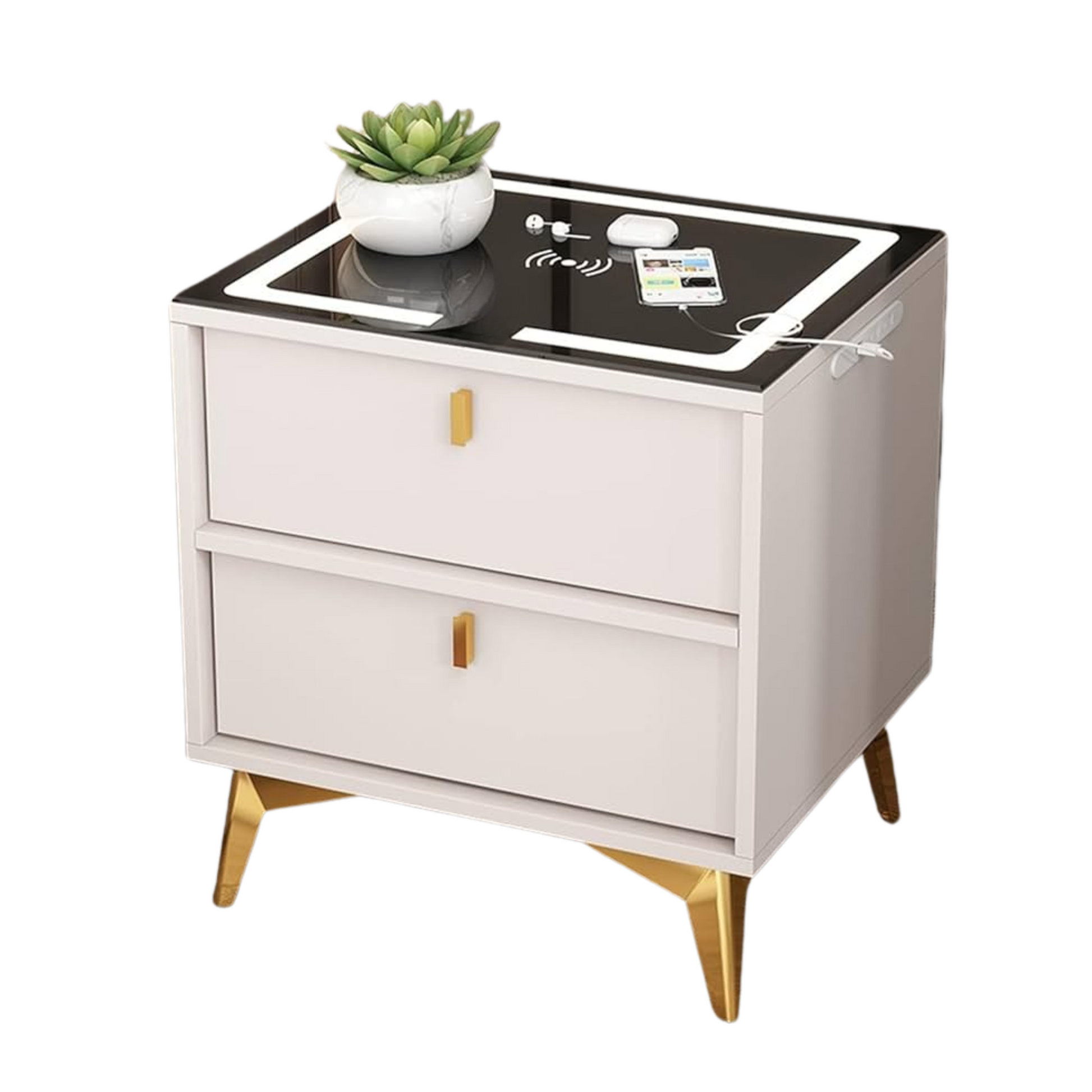 Mesa de noche inteligente con luces, función de cargador inalámbrico y dos gavetas