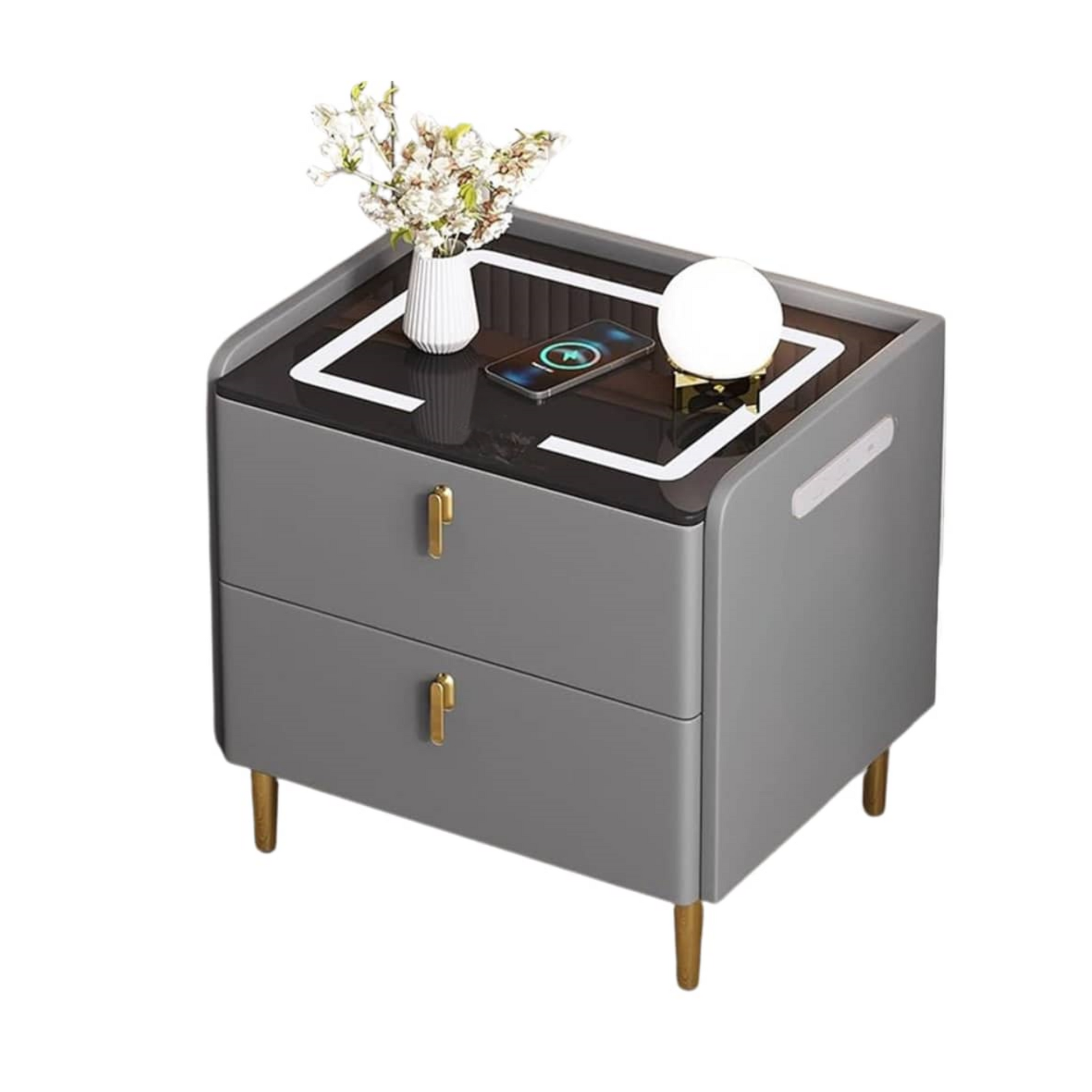 Mesa de noche inteligente con luces, función de cargador inalámbrico y dos gavetas