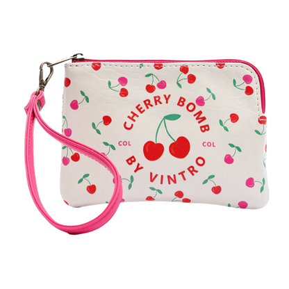 El monedero combina funcionalidad y estilo en un diseño con un vibrante estampado de cerezas. Con dos compartimientos internos para tarjetas o identificación y una cargadera removible para llevarlo con comodidad. Elaborado en cuero vegano.