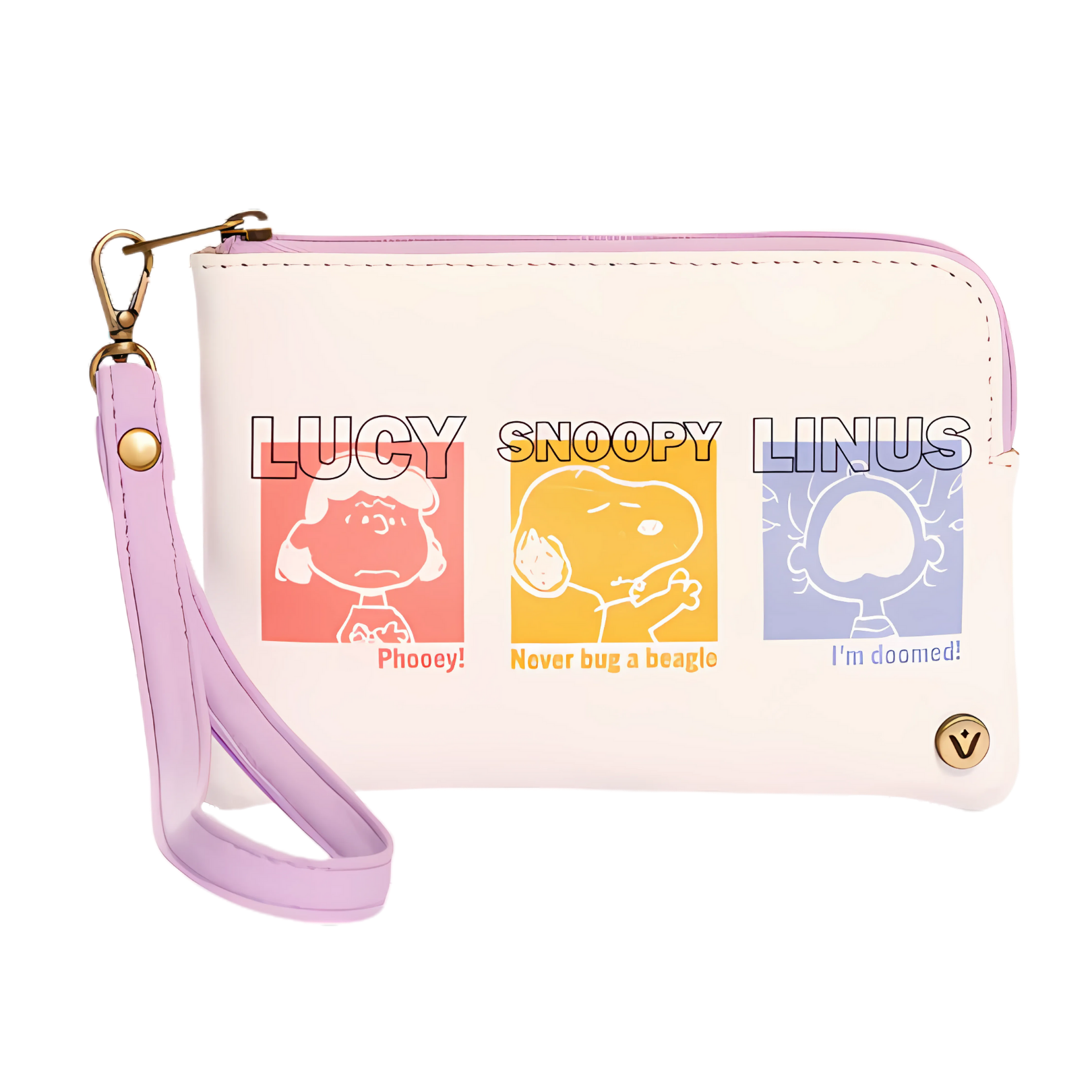 El monedero combina funcionalidad y estilo inspirado en Snoopy. Con dos compartimientos internos para tarjetas o identificación y una cargadera removible para llevarlo con comodidad. Elaborado en cuero vegano.