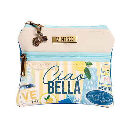 El monedero Egipto, de la colección Italia, está lleno de esencia viajera con detalles que evocan la magia italiana: la icónica inclinación de la Torre de Pisa, el romanticismo de Venecia y el encanto vanguardista de Milán. Como toque especial, lleva un dije de vespa que simboliza la libertad de recorrer cada rincón del mundo. Su diseño funcional incluye un bolsillo frontal, interior en tela antifluido.