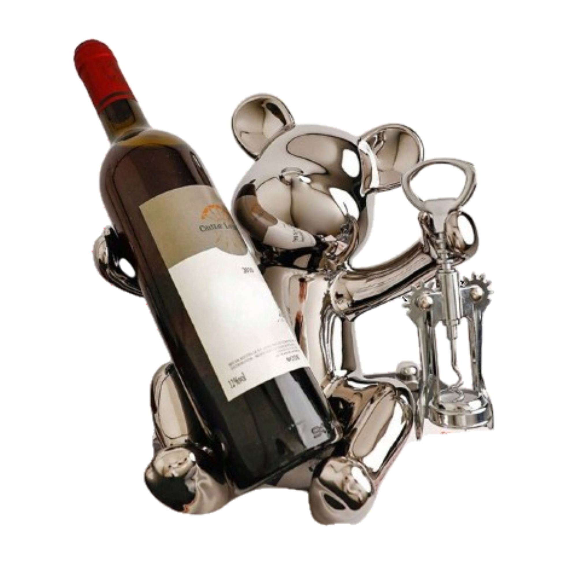 Oso Plateado de Cerámica con Sacacorchos
