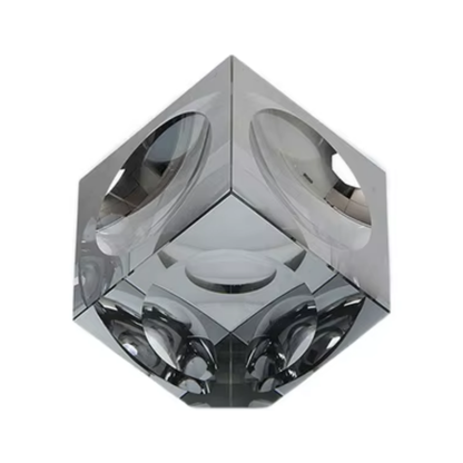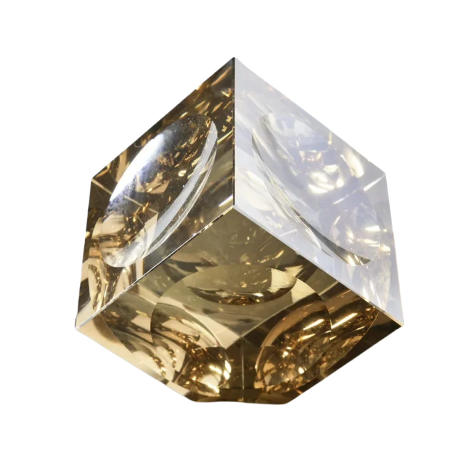 Pisapapeles decorativo de cristal en forma de cubo grande de diez centímetros de alto por diez centímetros de ancho.