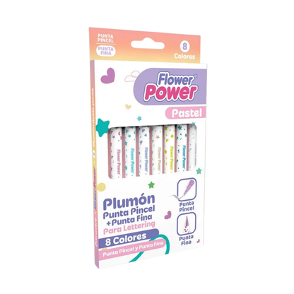 l Plumón Doble Punta Pastel Flower Power x 6 unidades es la herramienta ideal para los amantes del lettering y las técnicas de dibujo. Este set incluye 8 colores pasteles vibrantes que aportan un toque suave y elegante a tus proyectos. Con una punta pincel de trazo variable y una punta fina, puedes experimentar con trazos gruesos y delicados, creando efectos llamativos y detalles precisos según lo necesites. Este plumón es perfecto para quienes buscan darle un estilo único a cada palabra, línea y dibujo.