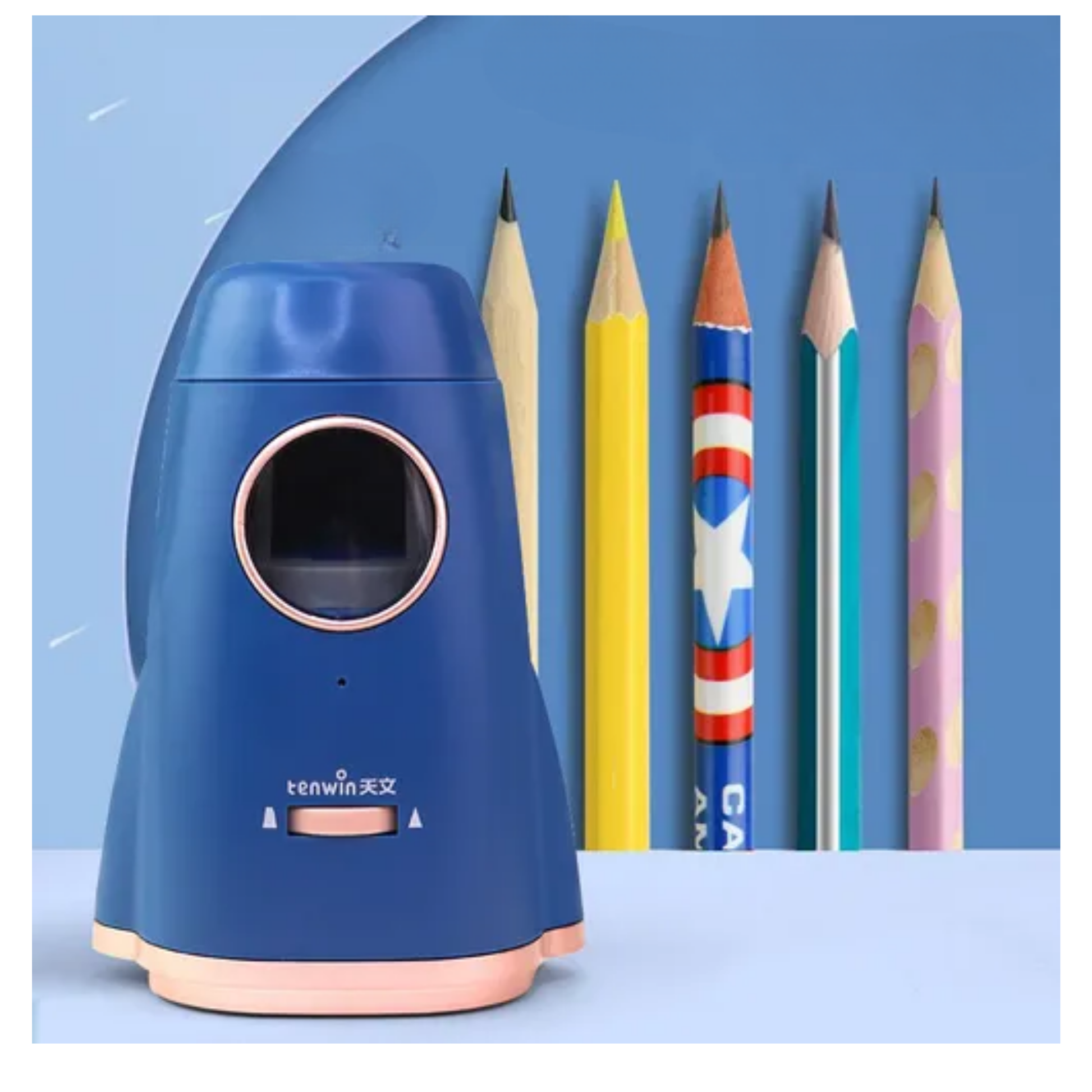 Sacapuntas eléctrico con forma de cohete Tenwin, afilado rápido, apto para lápices de dibujo y de colores. Sacapuntas portátil para niños.